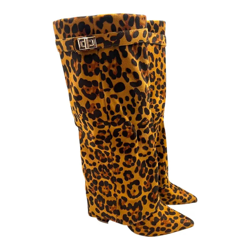 SARAH™ - 4-Inch Heel Suede Long Heeled Fold-Over Buckle Boots for Women Stylish Walking Shoes